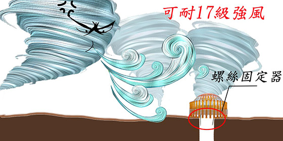 ●螺絲固定更牢固,可耐17級強風